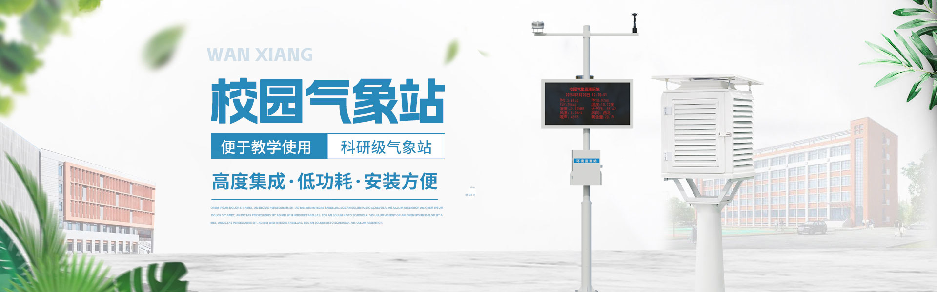 查看更多山東萬象環(huán)境科技有限公司官網主要產品有防爆氣象站,校園氣象站,農業(yè)氣象站,負氧離子監(jiān)測站,超聲波氣象站,歡迎咨詢15666889815!